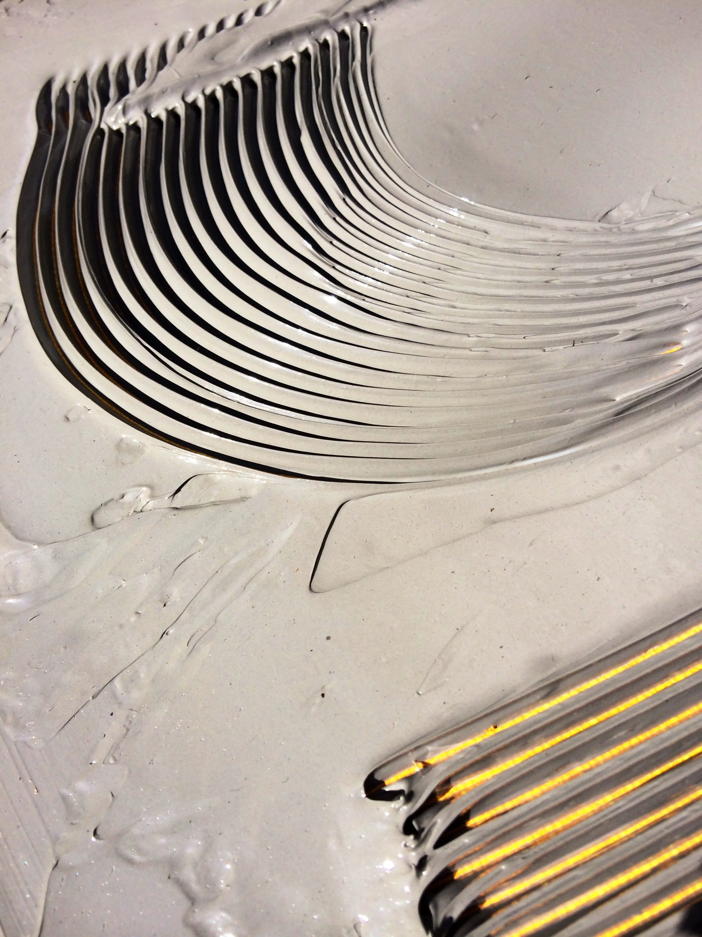 Painting, like photography, can be a 2 dimensional representation of space and light, but it can also be purely about the material and light itself. These explorations in paint rarely result from the pre-planned intention but rather are born in the moment. Their gestural quality has certainly influenced some of the architectural spaces in the work.
